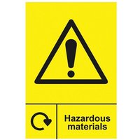 Sitesafe: Hazadous Mateial Recycling Sign Rigid PVC (200 x 300mm) Clearly separate hazardous material disposal with these recycling signs from Sitesafe. Quick and easy to mount, they're suitable for use both indoors and outdoors to appropriately segregate waste and recycling. Features and Benefits All Sitesafe signs are graphically consistent and conform to regulations Uses clear and distinctive lettering and colours for easy identification Designed and manufactured in the UK Available in a choice of self-adhesive vinyl or rigid PVC Standards BS EN ISO 7010 MPN: 18151 EAN: Hazadous Mateial Recycling Sign Rigid PVC (200 x 300mm) Attributes: Braille: No Description: Hazardous Material Recycling Design: Hazardous Material Recycling Fixing Method: Wall Fix Adhesive Legend/Symbol Colour: Black Material: PVC Overall Height: 300mm Overall Width: 200mm Primary Colour: Yellow Sign Type: Recycling