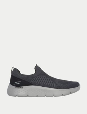 The Go Walk 7 Easy On 2 trainers by Skechers are designed for easy slip-on convenience, making them ideal for day-to-day wear. They feature the brand's hands-free moulded heel panel for a secure fit, plus a breathable mesh upper that keeps your feet cool. Air-Cooled Memory Foam® insoles provide plush cushioning, while lightweight ULTRA GO® and high-rebound Hyper Pillar Technology™ offer responsive support with every step. The durable dual-density traction outsole ensures good stability underfoot.
