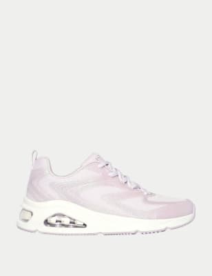 Take on the trails in comfort and style with these D'Lux Journey trainers from Skechers. The lace-up design is made in a Relaxed Fit® that provides extra room at the toe and forefoot for a super-comfortable feel. Air-Cooled Memory Foam® cushioned insoles keep your feet feeling fresh, while the flexible chunky soles provide plenty of grip.