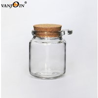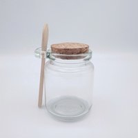 Small Glass Jelly Jar with Cork Lid Wooden Spoon for Salt, Sugar, Pudding, Honey