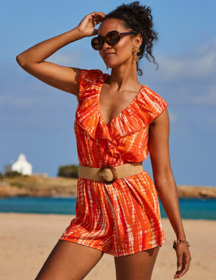 This Sosandar playsuit is crafted from floaty, lightweight fabric and lined with cotton for all-day comfort. It's cut in a regular fit, with a flattering V-neckline and a drawstring waistline trimmed with tassels for a boho look. The long ruffle-cuff sleeves feature embroidered detailing for a pretty finishing touch.