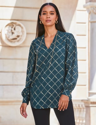Add a bohemian feel to your outfits with this floral print blouse from Sosandar. It's cut in a comfy regular fit, with long sleeves featuring shirred cuffs for a touch of airy volume. The gathered neckline fastens with a matching ribbon tie for a pretty finish.