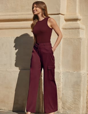 Sosandar Women’s Leather Look High Waisted Leggings – 8REG – Burgundy, Burgundy