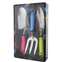 A set of three Stainless Steel Potting Tools: Small Trowel, Cultivator and Transplanting Trowel. All tools are covered by a 10 year warranty.Features & Benefits• Three piece garden tool kit • Made with mirror polished stainless steel • Includes small trowel, cultivator and transplanting trowelContents• Small Trowel • Cultivator • Transplanting Trowel