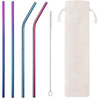 Stainless straws with customized logo, 8mm smoothie black matte stainless steel straws wholesale