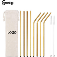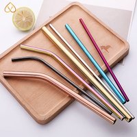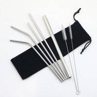 Straight metal drinking straw Custom metal straw bent with brush case silver colors 6mm Stainless steel straw metal