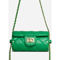 Ego Sueno Chain Detail Tube Shaped Cross Body Bag In Green Faux Leather, One Size -Complete your OOTD with this gorg bag doll. Featuring a green faux leather material, with chain strap detailing, in a tube shape and a cross body design.