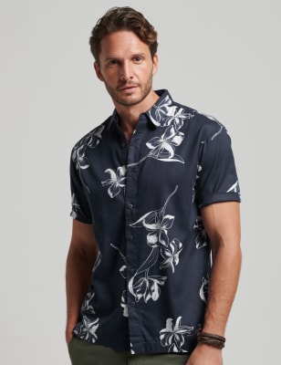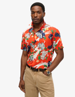 Bring vibrant style to your summer outfits with this breezy cotton-blend Hawaiian shirt from Superdry. It's cut in a comfortable relaxed fit, with a cool Cuban collar, side splits and airy short sleeves. The button-through piece features a bold print inspired by classic kimono silks.