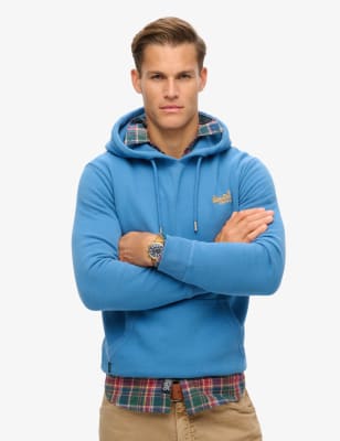 This cotton-rich hoodie from Superdry is a year-round essential. It's made in a comfy regular fit, with a drawstring hooded neck and a large kangaroo pocket at the front. A vintage-style brand logo on the chest adds a premium touch, while ribbed trims complete the casual design.
