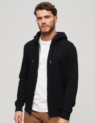 This Superdry hoodie is an essential layer for off-duty days. It's made in a regular fit from breathable pure cotton fabric. The long sleeves and hooded neckline offer extra coverage, while a kangaroo pocket provides a handy place to stash your essentials. This versatile piece is complete with an embroidered logo on the chest and a branded tab on the side.