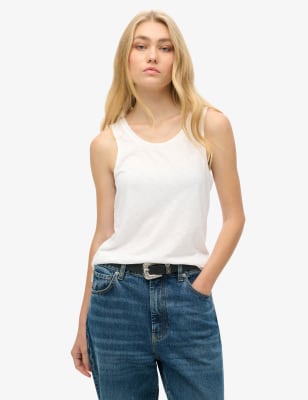 Throw on this cotton-rich tank top from Superdry for instant casual style. This versatile piece is cut in a comfy relaxed fit with a flattering scoop neckline. The brand's logo is embroidered at the chest for a signature finish.