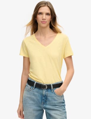 Superdry Women's Lyocell™ Blend V-Neck Relaxed T-Shirt - 16 - Yellow, Yellow