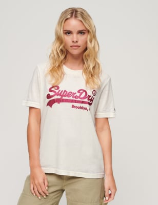 Superdry Women's Pure Cotton Logo T-Shirt - 8 - Pink, Pink,Navy Best Price: £26.99 from Marks and Spencer Buy for best price Description This pure cotton t-shirt from Superdry is an easy piece for your casual collection. It's made in a relaxed fit, with short sleeves and a flattering crew neckline. The brand's logo is printed on the front in a shiny metallic design. Review This Product Related Products Superdry Women's Cotton Blend Logo T-Shirt - 8 - White, White Best Price: £29.99 Compare prices Superdry Women's Cotton Rich Embossed Relaxed T-shirt - 8 - Pink, Pink,Light Pink,Cream Best Price: £26.99 Compare prices Superdry Women's Cotton Rich Embroidered T-Shirt - 8 - Pink, Pink Best Price: £19.99 Compare prices