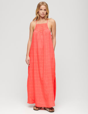 Elevate your summer style with this breezy sleeveless tea dress from Superdry. It's cut in a comfy relaxed fit, with an elegant v-neckline and a convenient back button fastening. The mini-length skirt is softly gathered to create a playful silhouette.