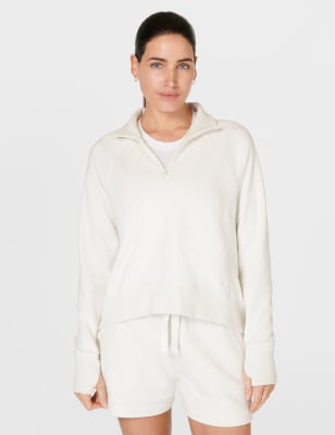 The cotton-rich Powerhouse zip-up hoodie from Sweaty Betty is the perfect pre or post-workout layer. Comfy relaxed fit with a drawstring hooded neck. Adjustable double-zip fastening. Finished with a split kangaroo pocket and subtle branding on the chest.