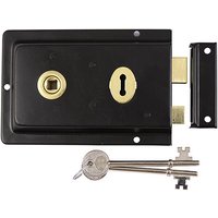 Taurus Rim Sash Lock (Inward and Outward Keep) 143x83mm Epoxy Black (RSLB)Ideal for use on shed and internal doors. Reversible - suitable for left and right hand doors. Key operated from both sides. Includes keep for outward opening doors. Please note: Fixings are not included.