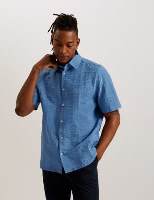 Add these cotton-rich tees from Ted Baker to your comfy basics. The set comprises three regular-fit designs, in assorted colours. Each features a crew neckline and short sleeves.