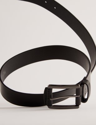 Add a stylish finishing touch to smart ensembles with this Ted Baker belt. The premium leather strap is etched with the iconic interlocking 'T' pattern, creating a subtle texture. It's complete with a rectangular gunmetal buckle, plus a branded keeper loop.