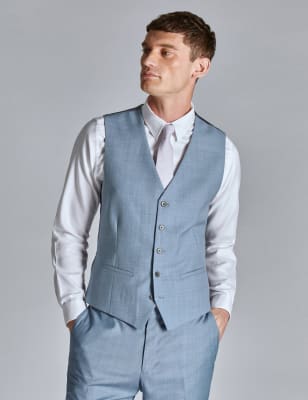 For smart styling, choose this wool-rich waistcoat by Ted Baker. It's cut in a contemporary slim fit, with a single-breasted five-button front. Two welt pockets and stitched darts add to the sharp tailored feel. The lining and back feature a playful jacquard pattern of large polka dots, plus the Ted Baker name written in circles.