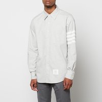 Thom Browne takes a more relaxed approach to design with this light grey cotton-flannel shirt. Made in Italy from cotton, the four-bar stripes hallmark the arm for unmistakable house signature. Pair with jeans.