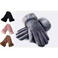 Trade up your old gloves for the Touchscreen-Compatible Faux Leather Fur-Lined Winter Gloves Made from super-soft and cosy faux fur materials with a faux suede outer With a fluffy inner lining that folds out on the wrist cuff Fingertips are made from touchscreen compatible materials Type on your phone and other devices with ease No need to take off your gloves and get chilly fingers. One size fits all (length: 23cm) Choose from 4 colours: pink, black, grey or khaki  Save on the Touchscreen-Compatible Faux Leather  Fur-Lined Winter Gloves for 7.99 pounds