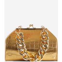 Ego Tuco Chunky Chain Detail Boxy Grab Bag In Silver Croc Faux Leather, One Size -Add a touch of glam to your evening look doll. Featuring a silver croc print faux leather material, with chunky chain detailing, in a boxy grab bag design.