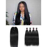 UNice Hair 3 Bundles With Closure Middle Part 100% Virgin Remy Human Hair T Part Lace Closure Natural Black Color