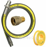 UNIVERSAL Oven Cooker Gas Supply Hose Installation Kit (5ft - 1/2) Brand new gas supply hose installation kit with straight bayonet end connector, straight pipe joint and PTFE tape for all makes and models of oven / cooker. Kit Includes: One wrap gas pipe thread sealing tape Straight socket connector 5 ft Straight bayonet supply hose Product features Suitable for 1st, 2nd and 3rd family gases. All connector points have passed the high temperature test - EN1775 and EN15069 Fully BS EN14800 & CE certified Covered by CE and Kitemark certification Outer sheathing is UV Ray and OZONE resistant - important for outdoor LPG installations There is a certain amount of tube shaping possible - which will assist when installing in tight spaces Suitable for LPG and natural gas Measurements: 5ft (1500mm) x 1/2 Fits models: UNIVERSAL All makes and models of oven / cooker - (Please check gallery image for close-up of connection points)