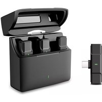 V8 Type-C Interface Plug and Play 2.4G Wireless Lavalier Microphone Live Broadcast Lapel Mic 1 Transmitter + 2 Receiver - Pink
