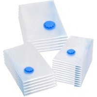 Our vacuum compressed storage bag can store your bulky or out of season items and maximise space in your home or on the move. With these storage bags, you can compress clothes, pillows, throws, seasonal bedding and so on. It is perfect for use at home, travelling, moving house, etc. The bag, made of plastic, is anti-mildew, anti-mould and waterproof. It is easy to use, just open the bag, store items, close the bag, vacuum it up. The easy-to-seal slider allows you to close and open the bag quickly. This compressed bag is also easy to clean and is reusable. Please note: The pump is not included. Colour: Transparent and blue Material: Plastic Size: 120 x 70 cm (L x W) Type: Flat vacuum storage bag Mould, mildew and bacteria proof Easy-to-seal slider With inlet and outlet valves Delivery contains: 10x Vacuum bag SKU: 51335