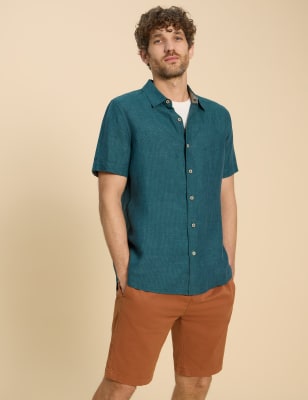 This breezy linen shirt from White Stuff is a cool choice for warmer days. It's cut in a comfy regular fit, with a classic collar and button-through front. The airy short sleeves lend this piece casual look.