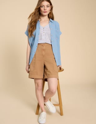 These knee-length cargo shorts from White Stuff are crafted from a comfortable cotton blend. They're cut to a regular fit, with a mid-rise waist and button and zip fastening. Side and back pockets provide handy storage, while the belt loops offer a practical finish.