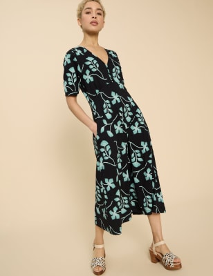 Bring an effortlessly feminine feel to your wardrobe with this cotton-rich shirt dress from White Stuff. The button-through piece is designed in a regular fit, with a flattering midi-length skirt, puffy short sleeves and smart collared neckline. The fabric is embroidered with a delicate broderie anglaise pattern.