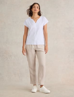 With its folksy embroidered details, ths cotton-rich top from White Stuff has a boho-inspired look. It's made in a comfy regular fit, with neat short sleeves. A v-neckline adds a feminine touch.