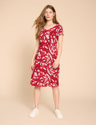 With its vibrant print, this jersey tea dress from White Stuff is a standout choice for casual days. It's cut in a comfy regular fit, with a notch neck and short sleeves. The knee-length skirt gives a sophisticated finish.