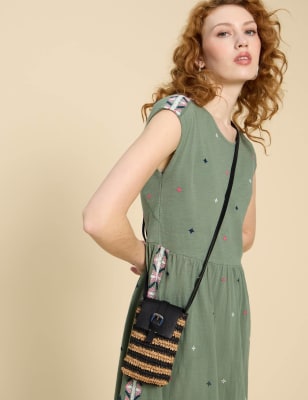 This leather bag from White Stuff makes a practical choice for everyday use. It's made in a cross body style that leaves your hands free and has a secure zip fastening to the cotton-lined central compartment. An external zipped pocket provides a handy spot to store smaller valuables. Plus, there's a pouch on the back for easy access to items such as travel passes. This piece comes with a matching coin purse that can be clipped to the strap.