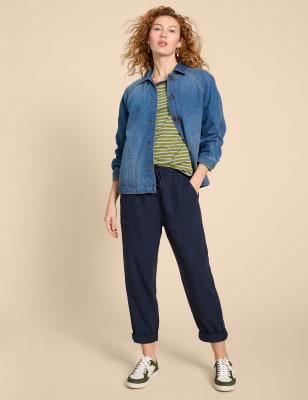These linen-rich trousers from White Stuff are ideal for weekend outings. They're cut in a relaxed fit, with a flexible elasticated waist and drawstring tie. A striped pattern gives a classic finish, which is complete with side pockets to keep your essentials close.