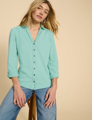 This pure organic cotton broderie shirt from White Stuff is a fresh choice for sunny days. It's cut in a comfy regular fit, with a neat collared neckline and a button-through fastening. The short sleeves are finished with roll tabs for a modern touch. Side splits at the hem ensure ease of movement.