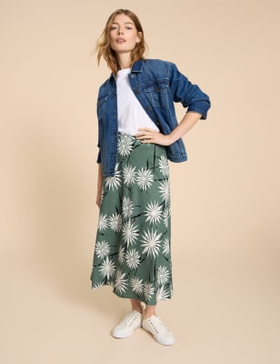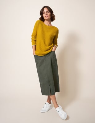 Give your styling a laid-back feel with this cargo skirt from White Stuff, crafted from pure organic cotton. It fastens with a button and zip at the waist for easy wear. Patch pockets on sides add a utility-inspired look, while slip pockets at the hips offer extra space for essentials. This piece is lined for comfort and is complete with a split in the midi-length hem for freedom of movement.