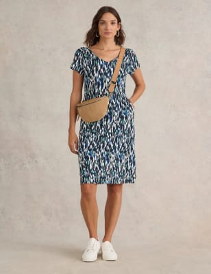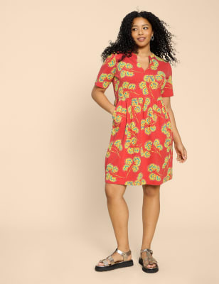 This knee-length printed tea dress from White Stuff brings extra femininity to your wardrobe. It's cut to a flowing relaxed fit, with gentle gathers at the chest and back to accentuate the flared skirt. The long sleeves are cuffed, while a v-neckline offers a universally flattering look.