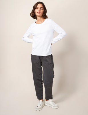 White Stuff Women's Pure Cotton Crew Neck Long Sleeve Shirt - 18, White