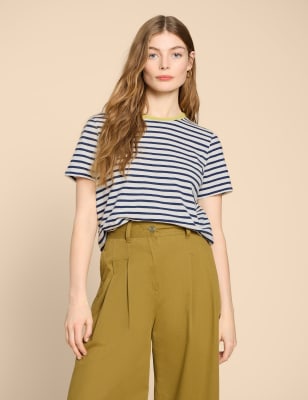 Add a playful touch to your casual wardrobe with this pure cotton t-shirt from White Stuff. It's cut in a comfortable regular fit, with a neat crew neckline and laid-back short sleeves. The horizontal striped design is complemented by embroidered detailing on the shoulders.