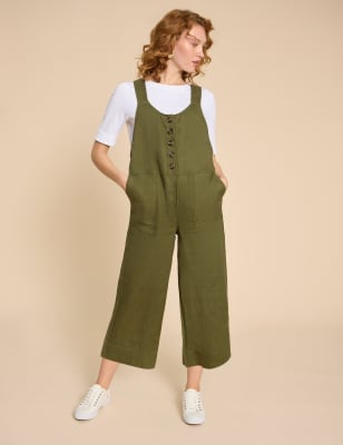 These White Stuff dungarees are crafted from pure linen that feels cool and gentle on the skin. They're cut in a sleeveless style, with a v-neckline and a cropped leg length for a playful feel. Chunky button fastenings add detail to the bib, while pockets at the front and back offer useful storage.