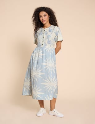 With its bold floral print, this pure linen dress from White Stuff is a statement choice for daywear. It's cut in a comfy regular fit, to a timeless waisted silhouette. Short sleeves and a v-neckline provide a feminine feel, while front button fastenings add extra polish. Pockets at the hips offer handy storage for your essentials. The hemline sits at an on-trend midi length.