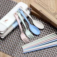 Wholesale Biodegradable Eco Friendly Nature Wheat Straw Fiber Travel Cutlery Set Fork Spoon Chopsticks Flatware Set
