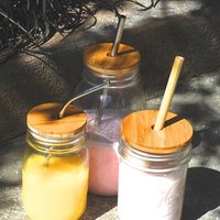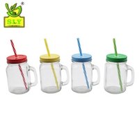 Wholesale Transparent Gradient Custom Laser Logo 500ml 16oz Glass Mason Jars With Handles and Straw Bamboo Lids