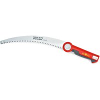 The PC370MSPRO has a curved pull saw blade with a branch hook and bark scratcher. The PC370MSPRO has an integrated handle for working at close quarters and it can also be fitted to any Wolf Garten Multi Change handle for pruning at height. An integrated safety clip prevents the saw from becoming detached from handles during use. Specifications • Blade Length: 36cm • Blade Material: Stainless Steel • Handle Material: PlasticFeatures & Benefits• Can be used handheld or attached to any Multi Change handle • Stainless steel blade • Double hardened teeth • Branch hook prevents saw from being pulled out of the cut • Bark scratcher prevents cracks and splits in the bark • Safety clip for secure connection to Multi Change handles