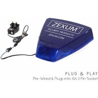 Zexum Blue DIY Dummy Alarm Box With LED Backlight, Sounder, & Strobe This plug and play dummy alarm box features LED back lighting and Strobe tamper effects in a stylish and authentic trans-blue casing. An economical and effective alarm for your property, This sounder from the dummy alarm box offers a number of engineer friendly features including the unique leveling mechanism and modular components for simple installation. This dummy alarm box is designed to be used via a 13A socket ran and can be routed through soffit vents or a wall in your home. This enables you to have a convincing dummy alarm box hooked up to mains electricity, with no batteries to worry about. The dummy alarm box comes complete with front and rear tamper protection and in the event of a potential sabotage attack and the 109bBA sounder provides a distinctive audible warning if someone opens the dummy alarm box. The Cover is labelled with Zexum Security Products branding for deterrence. The hinged cover locks into place so that both hands are free to work on the sounder. Main Features: 109 dBA sounder. Piezo sounder with high decibel output. Low voltage strobe. The strobe emits a low voltage as it comprises of LED bulbs Easy to fit with a built in spirit level Simple plug and play. Comes with plug adapter to power the bellbox. Technical Specification: Operating Voltage Supply: 9-16 V DC (13.5 nominal) Protected: Reverse polarity protected Current Consumption Quiescent Current: < 60 mA Alarm Current: < 300 mA Strobe Duration: 100 ms Strobe Frequency: 1Hz Dimensions Dimensions: [W]290 mm [H] 285 mm [D] 50 mm 1 Year Guarantee Included