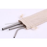 custom Reusable Straw set wholesale Stainless Steel metal drinking straw with Cleaner Brush with drawstring pouch