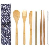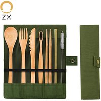 reusable bamboo cutlery set Portable reusable bamboo kitchen utensils Travel Eco-friendly Fork Spoon Straw